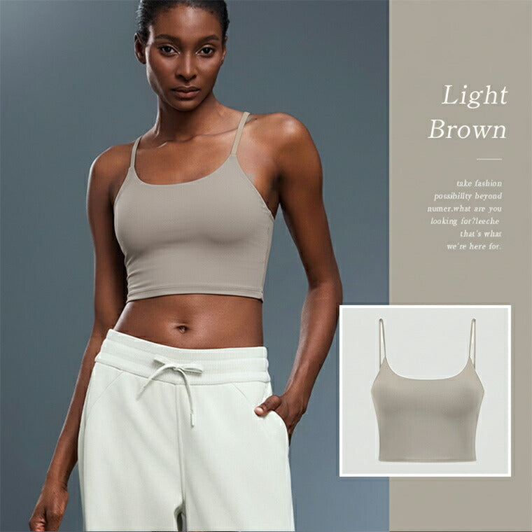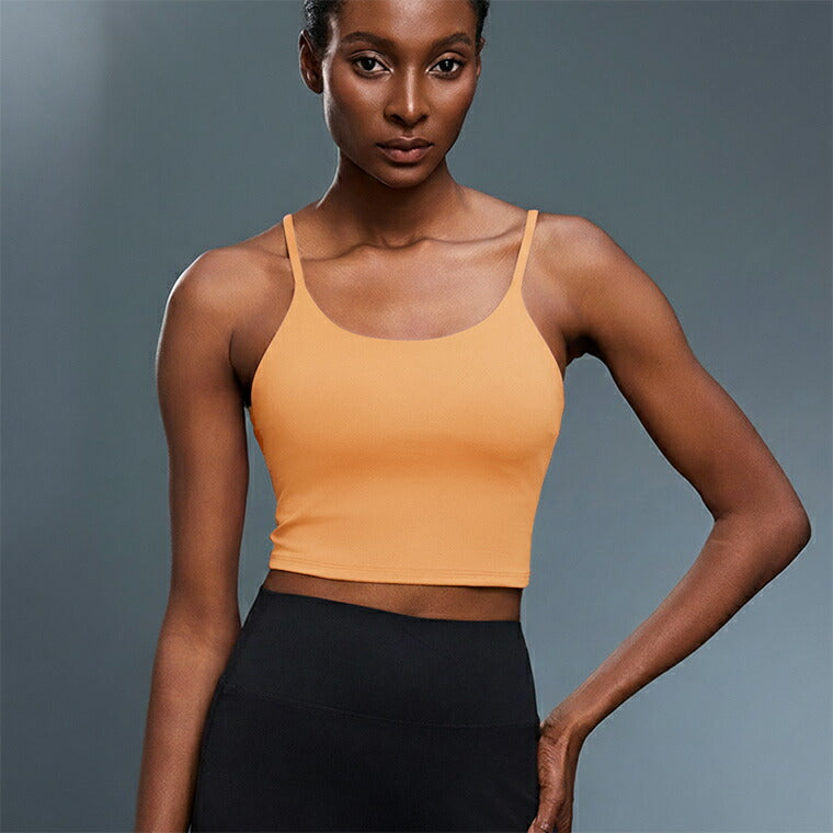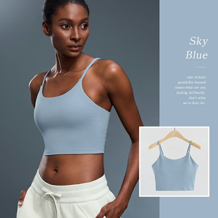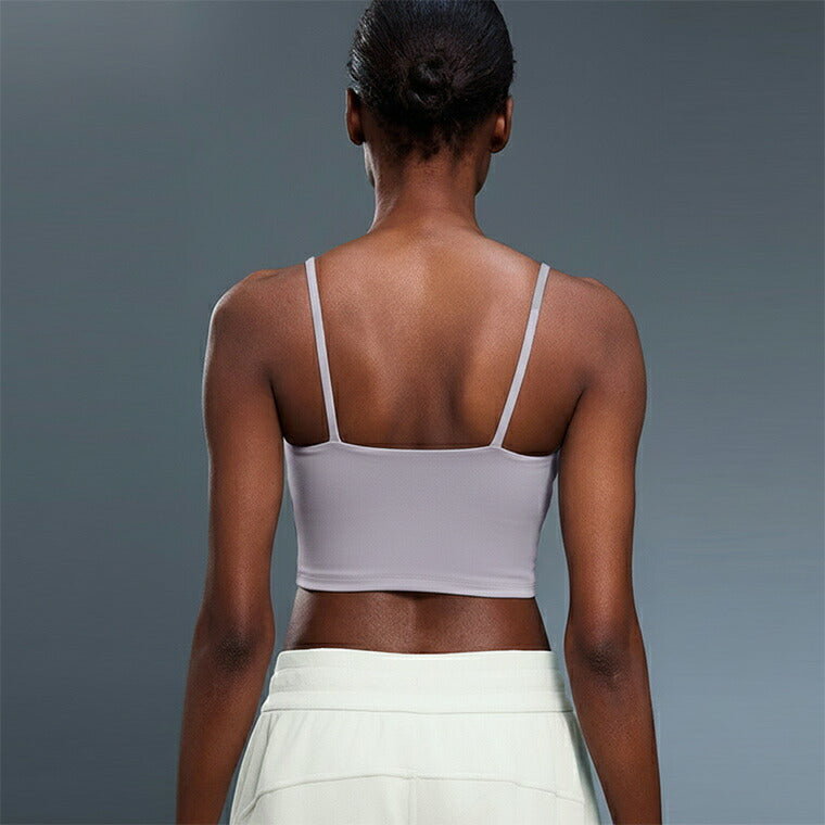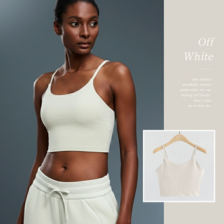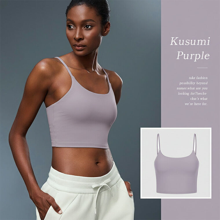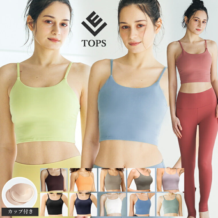 The length allows you to show off a healthy amount of skin. It also makes your legs look longer, enhancing your style just by wearing it. The soft fabric is moisture-wicking, quick-drying, and stretchy, making it stress-free to wear. It comes with plastic cups so you can wear it on its own. This half-length top with cups has elastic under the top for a secure fit.