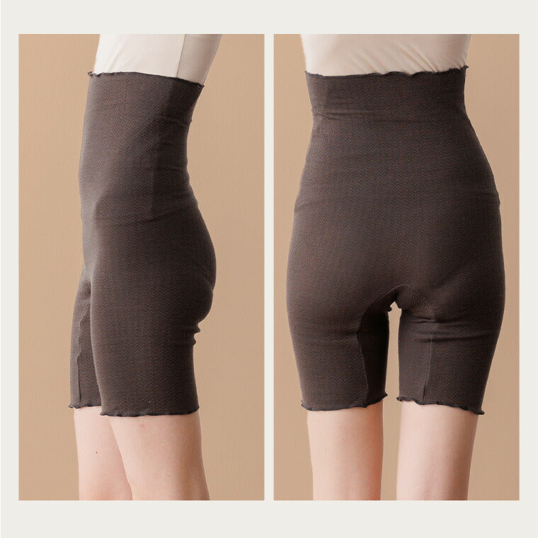 腹巻とショーツが一体化した「腹巻パンツ」温かさの持続と優しい肌触りが特徴の、保温性・吸放湿に優れた生地を使用。