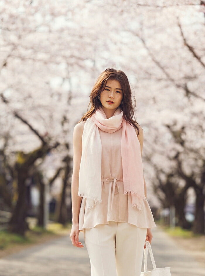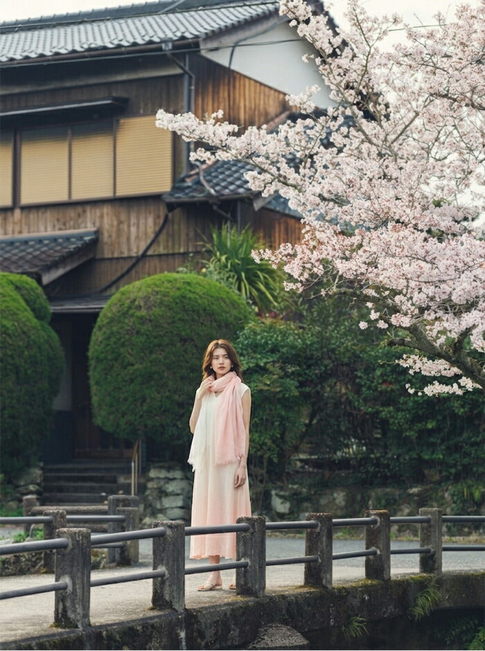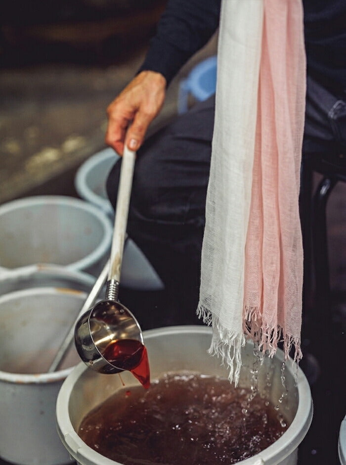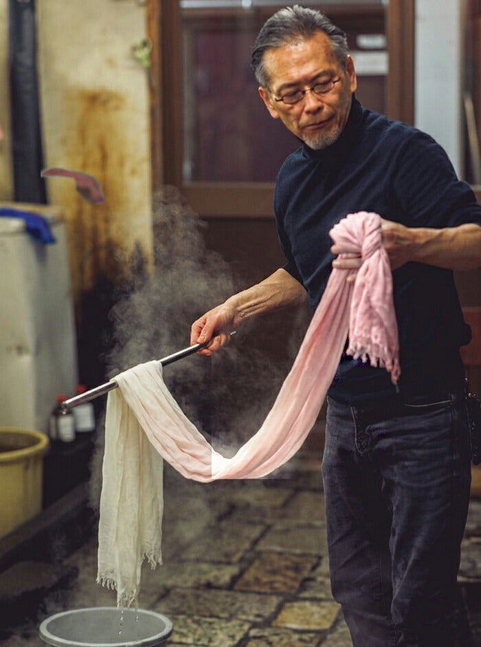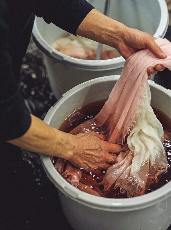 染めの職人が一枚一枚に想いを込め、桜から抽出した天然の色で丁寧に染め上げたストール。
