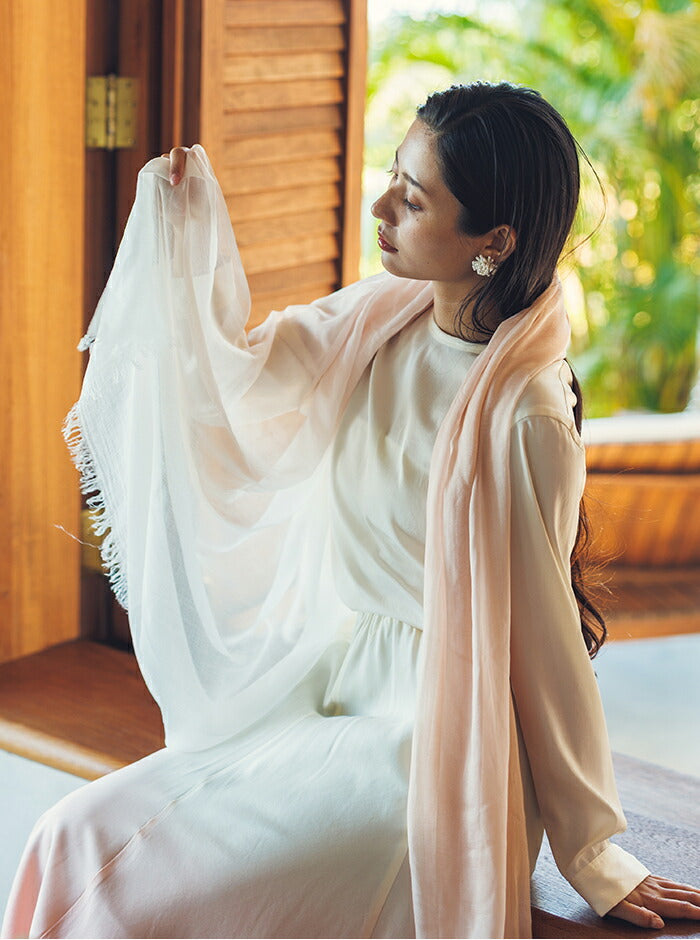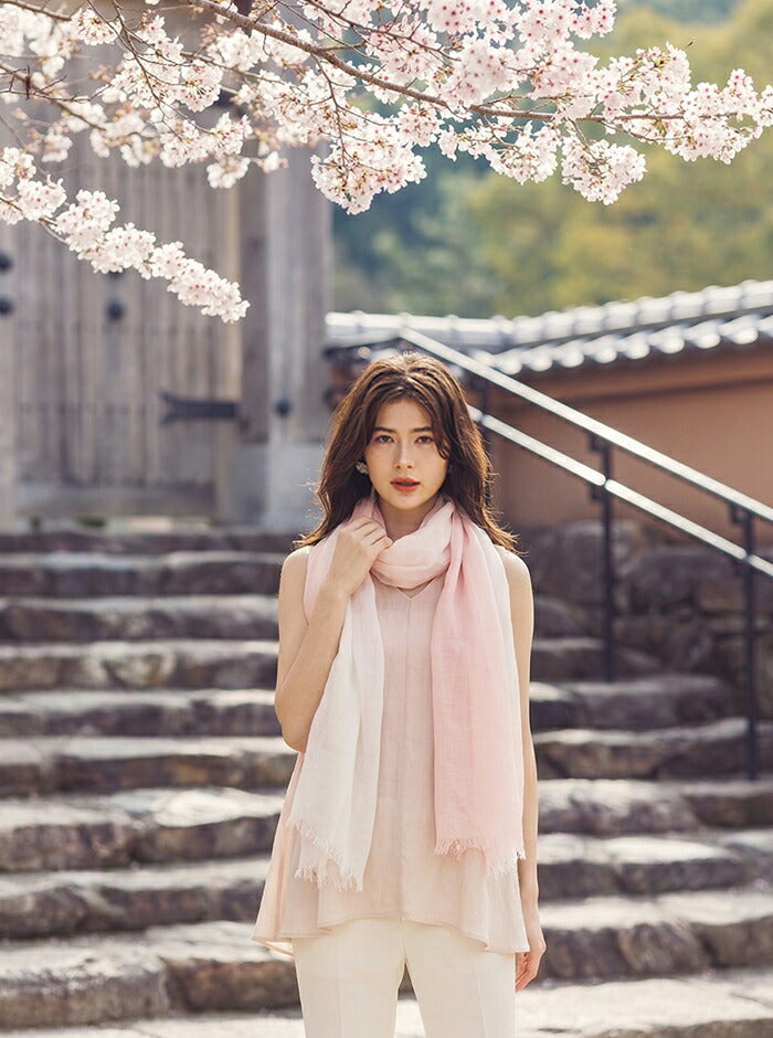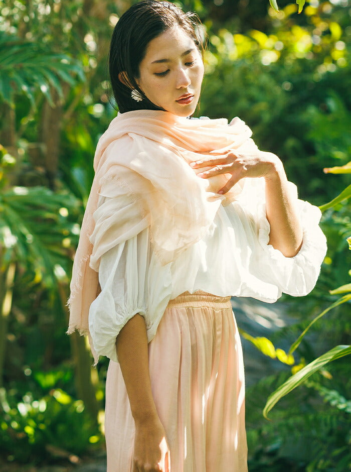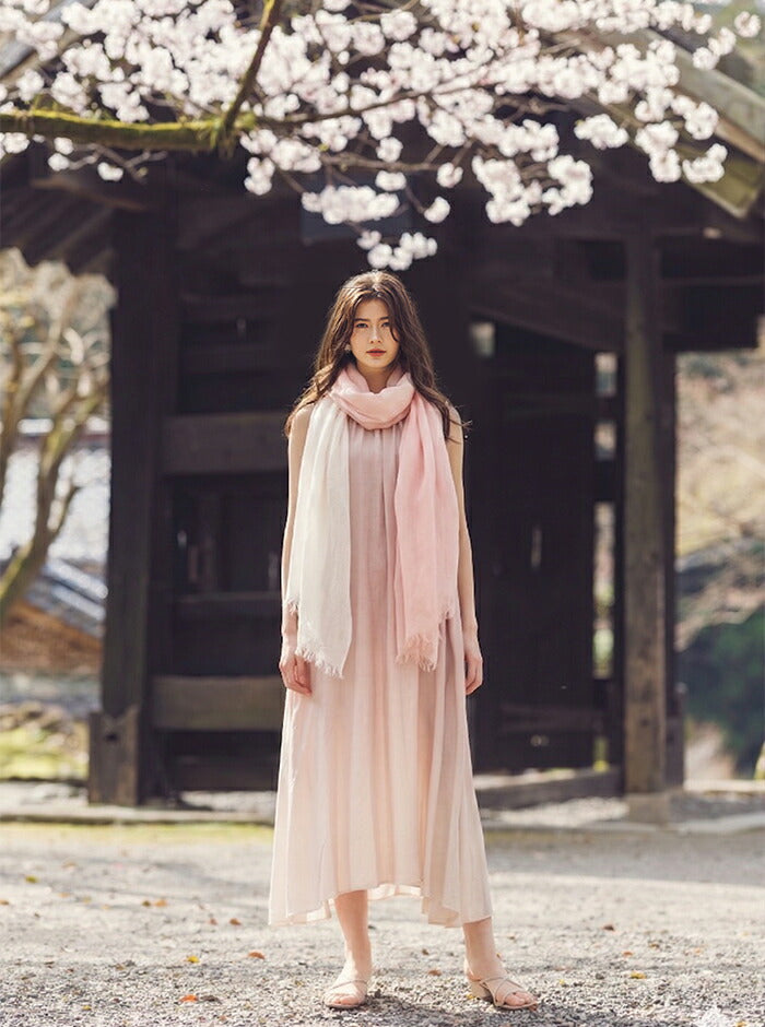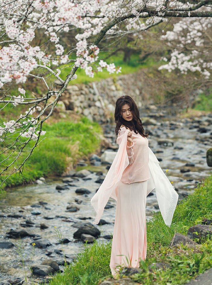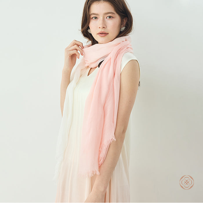 染めの職人が一枚一枚に想いを込め、桜から抽出した天然の色で丁寧に染め上げたストール。