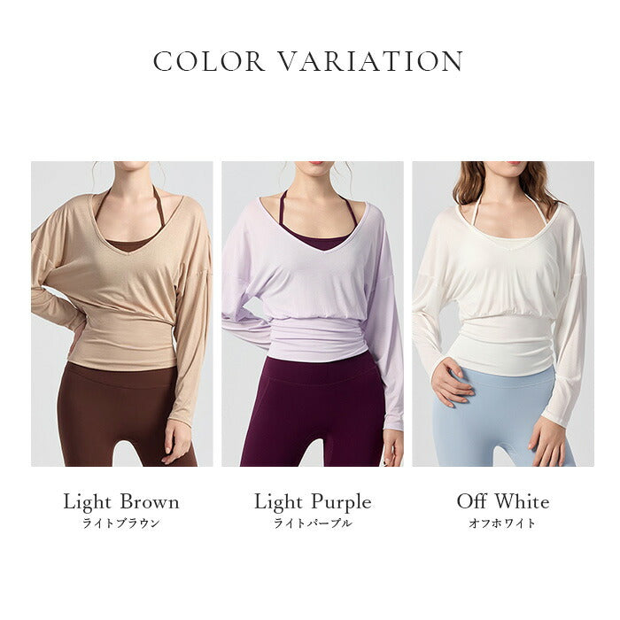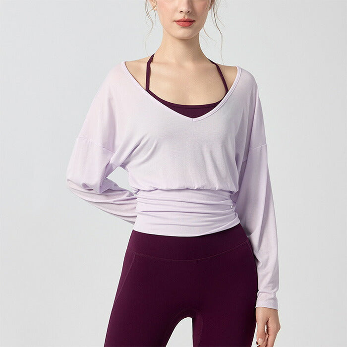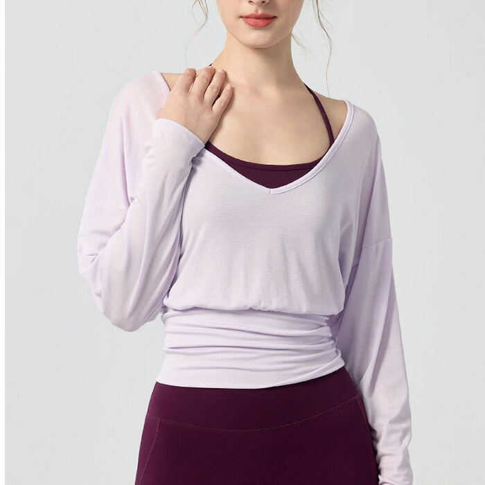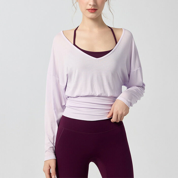 優れた伸縮性と通気性を兼ね備えた軽量素材を採用。吸汗速乾性があり、ホットヨガやフィットネス、ダンスなど汗をかくシーンでも快適◎。