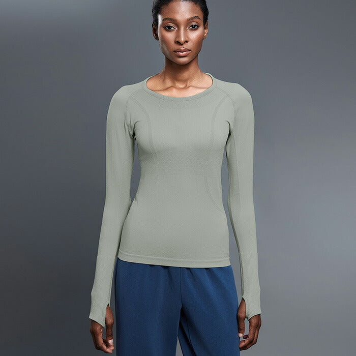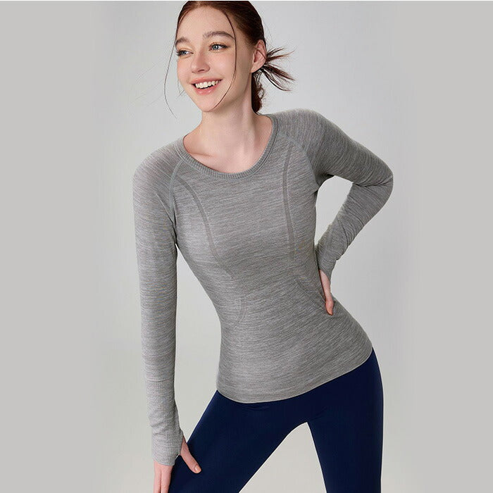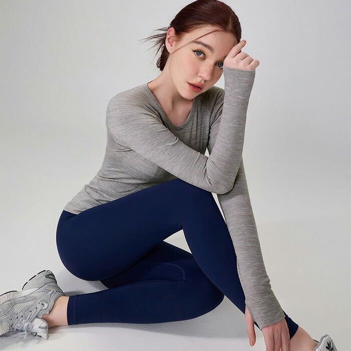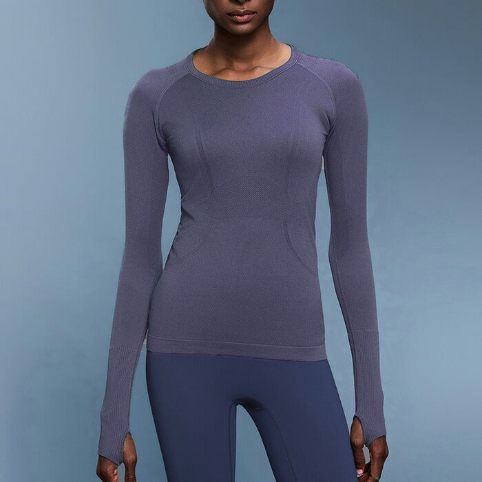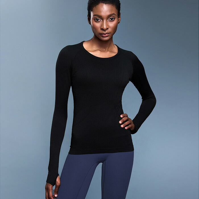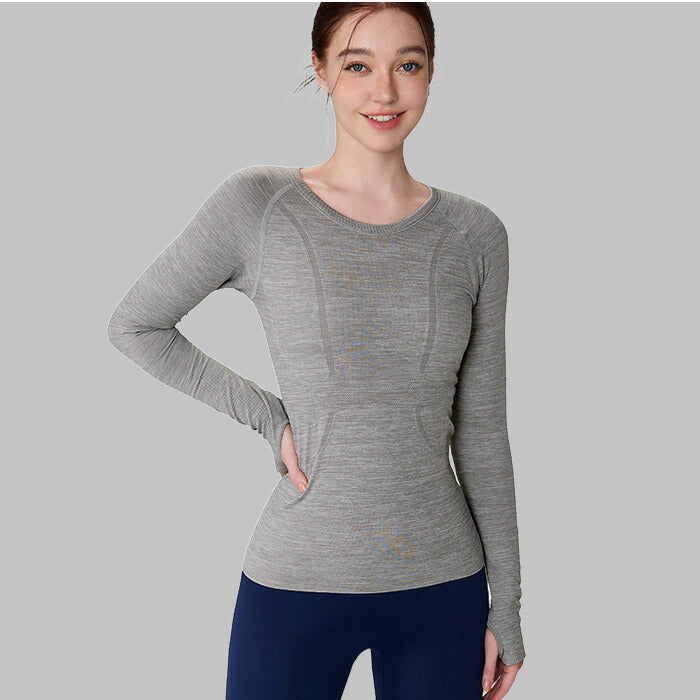 手の甲までしっかりカバーする便利な指穴付き。激しい運動でも袖のずり上がりを防止!
