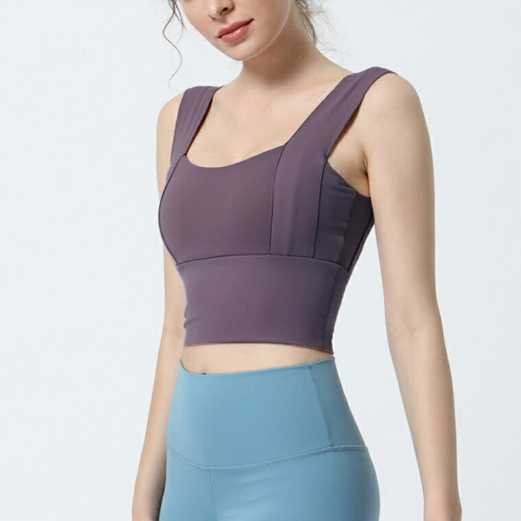 取り外し可能なブラカップ付きで、一枚での着用も可能。パーカーやシャツなどは羽織もののインナーに最適です。スポーツシーンだけでなく、デイリーユースもできるマルチに活躍してくれるブラトップです。