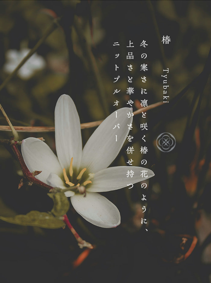 | コンセプト | 冬の寒さに凛と咲く椿の花のように、上品さと華やかさを併せ持つニットプルオーバー |