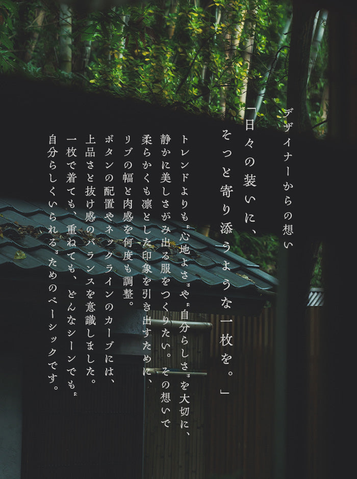 トレンドよりも“心地よさ”や“自分らしさ”を大切に、静かに美しさが滲み出る服をつくりたい。