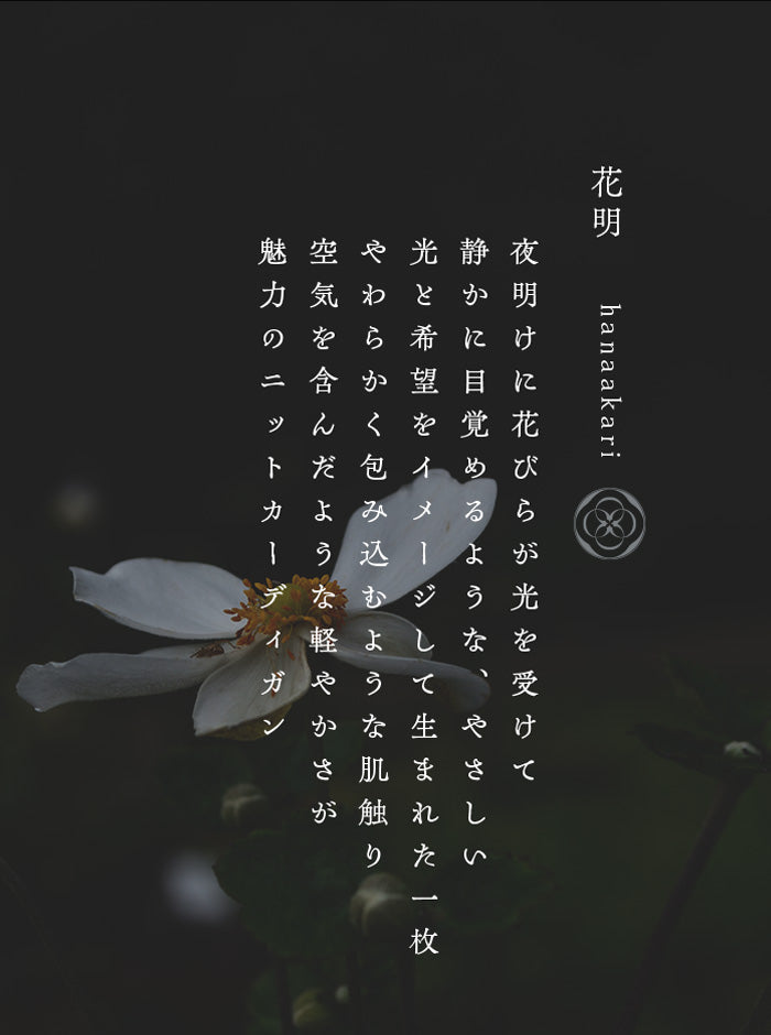 | 商品名 | 花明(はなあかり) オーガニックコットン カーディガン |