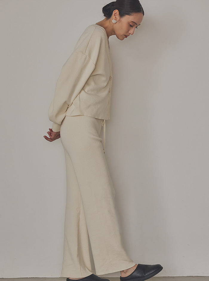 程よく厚みを持たせたニット地が、美しいドレープと直線的な落ち感を生み出します。