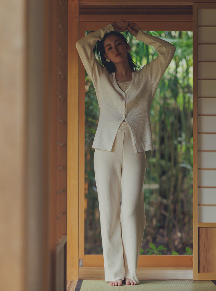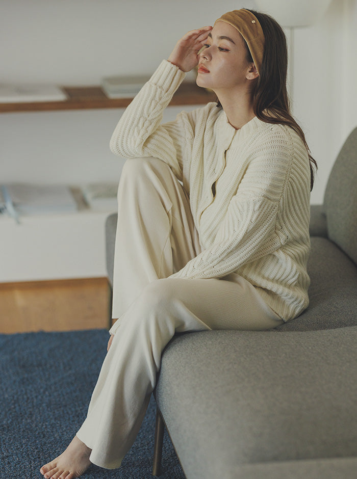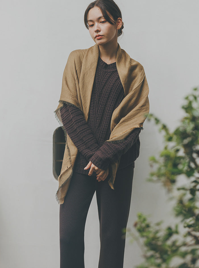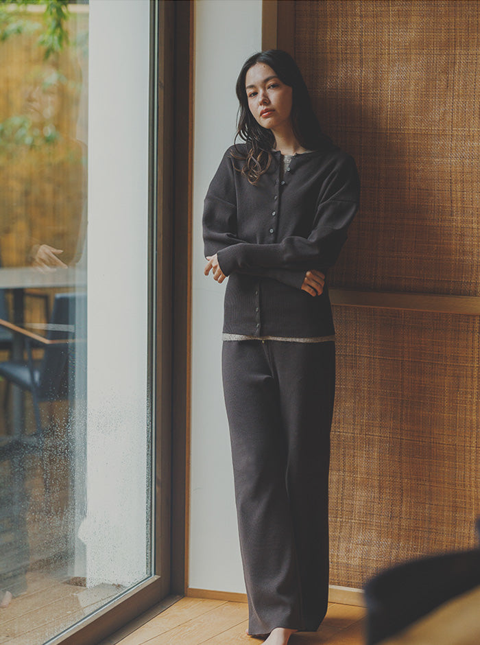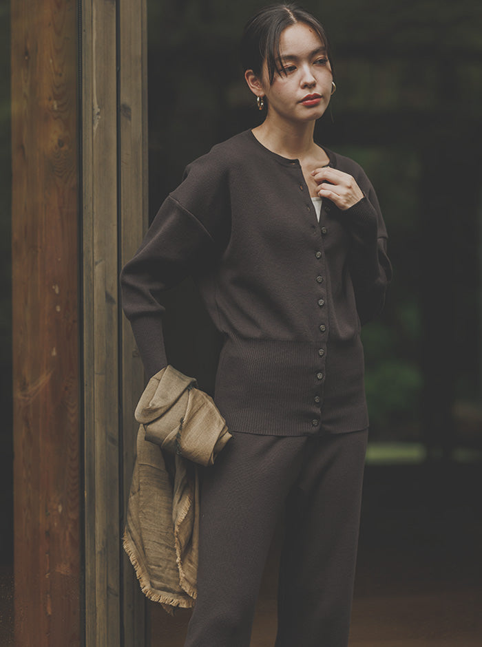 柔らかな肌ざわりとリラックス感のあるデザインで、日常に取り入れやすく、ナチュラルでシックな印象を演出します。