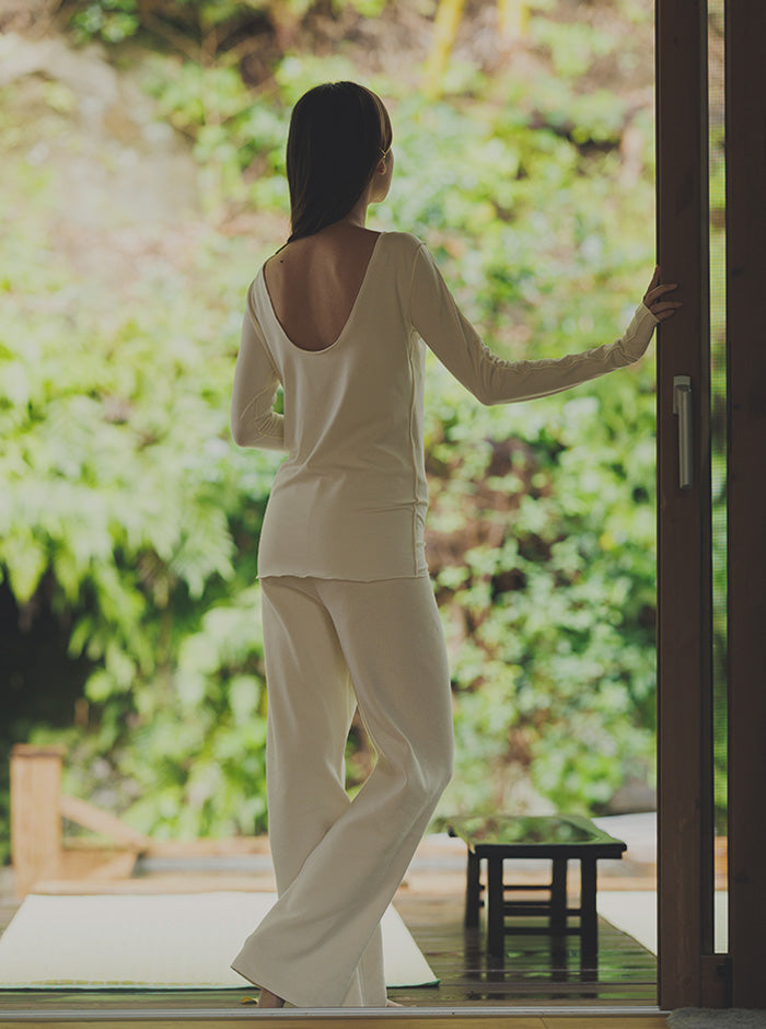 素肌に触れた瞬間に感じるのは、やわらかなぬくもりと、ふっと力の抜ける安心感。
