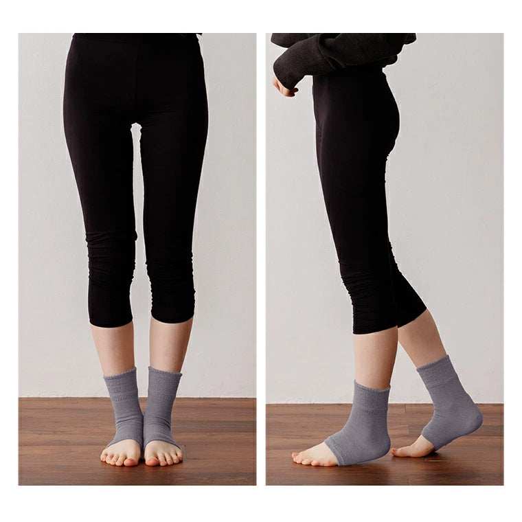 伸びの良いストレッチ素材で足首部分はゴム糸を少なくし、締め付け感を軽減。履いていることを忘れるくらいとても柔らかな履き心地。