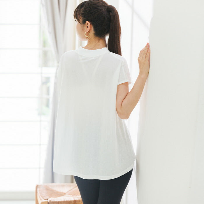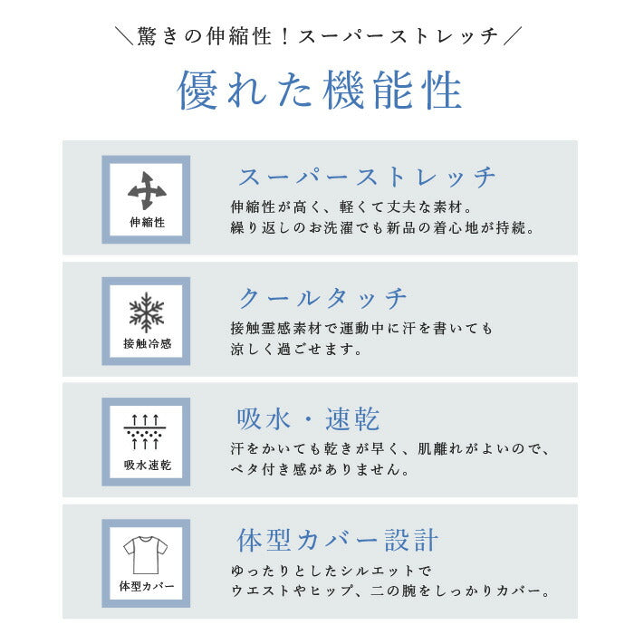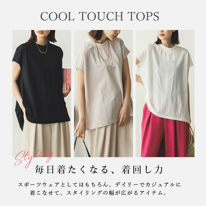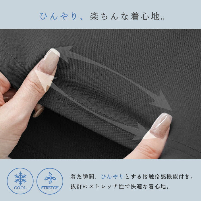 肌にふれるとひんやりする接触冷感素材を使用し、暑い日もさらっと快適に過ごせます。
