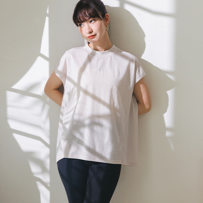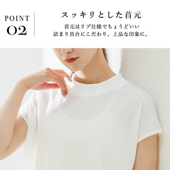首元はリブ仕様でちょうどいい詰まり具合にこだわり、上品な印象に。