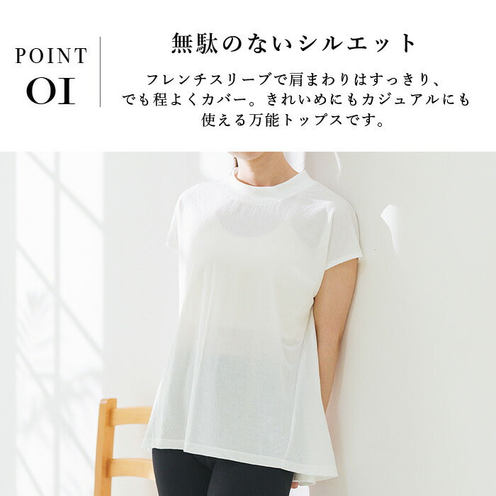 フレンチスリーブで肩まわりはすっきり、でも程よくカバー。