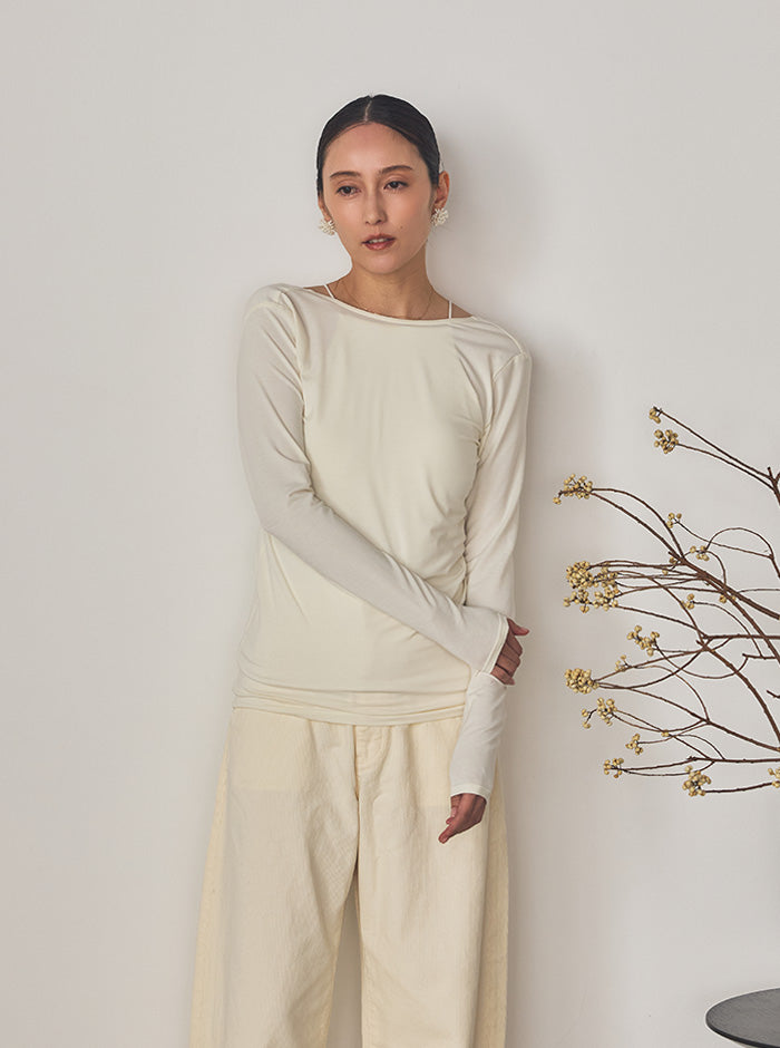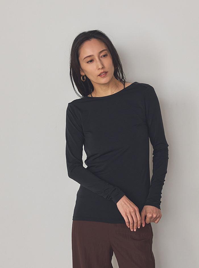 身体の動きを邪魔しない滑らかなカットと、縫い目の響かない日本製ならではの繊細な仕立てで、日常の中に“静かなモード感”を添えます。