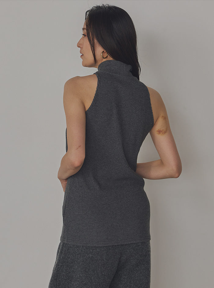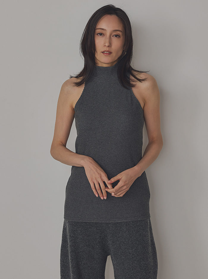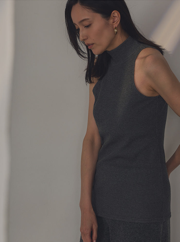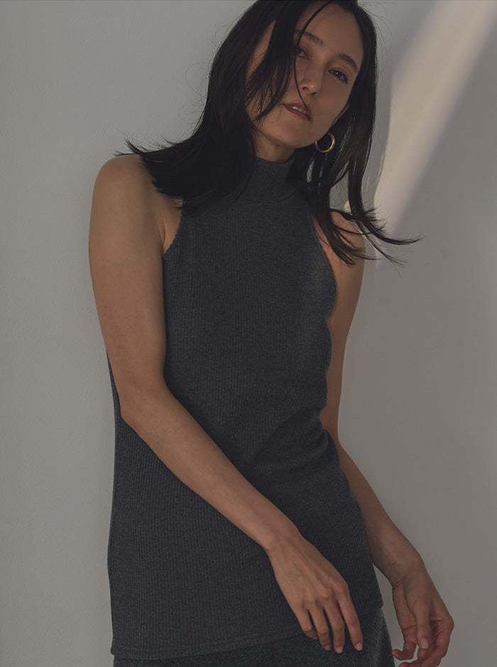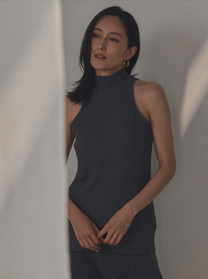 リブニット ハイネックタンク