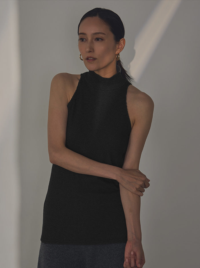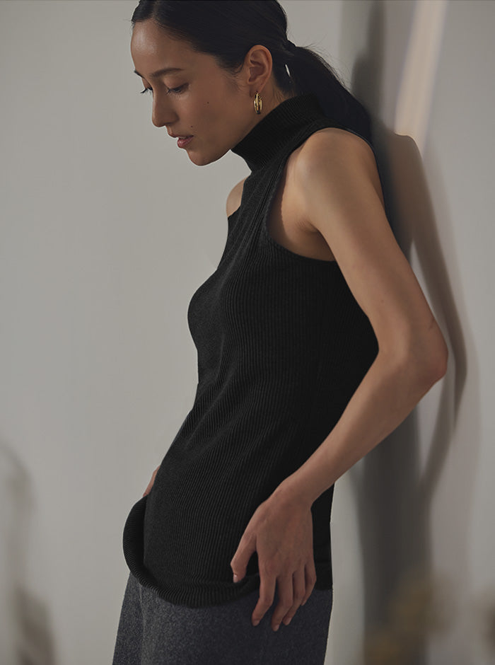 水面に凛と咲く「睡蓮」をイメージした、日本製リブニットのハイネックタンク。