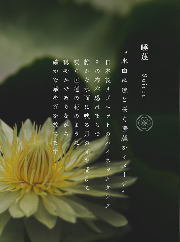 | コンセプト | 水面に凛と咲く「睡蓮」をイメージした、日本製リブニットのハイネックタンク |