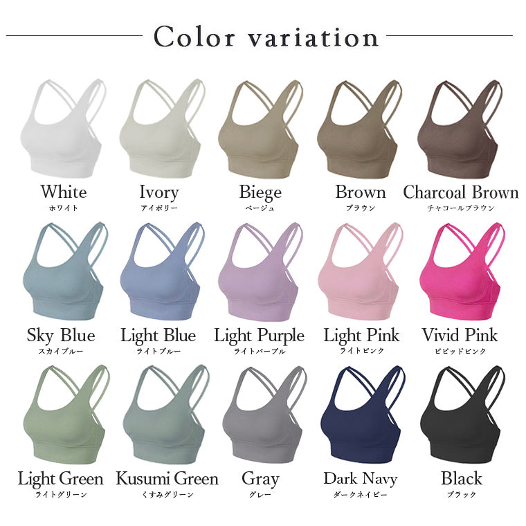 すっきり見えするブラカップ付きのショートカップ付きトップス。後ろの華奢なクロスストラップがポイント。フィット感がありながらソフトな風合いがストレスなく着られる優秀な一枚。速乾性にも優れ、デザインだけでなく、高い機能性も兼ね備えています。※取り外しカップ付き