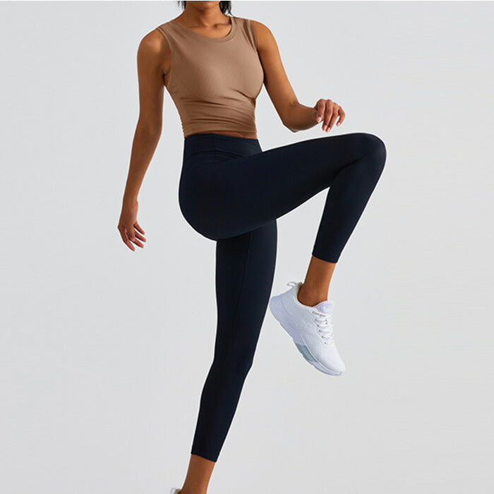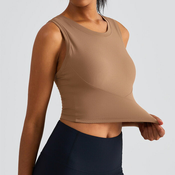 ホットヨガにも対応し、汗をかいても快適な着心地をキープします。シンプルだからこそ着回しやすく、ヨガやフィットネスに欠かせない一枚です。