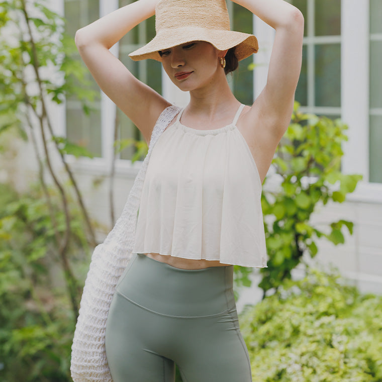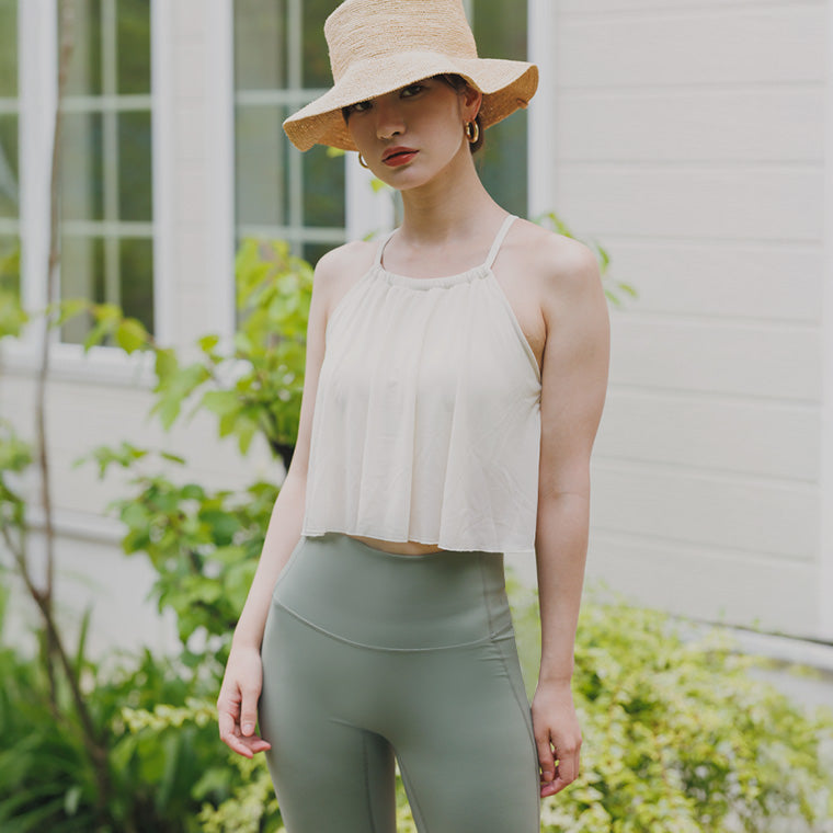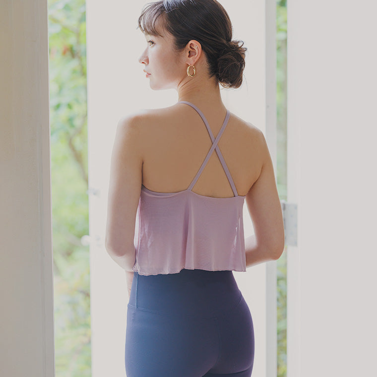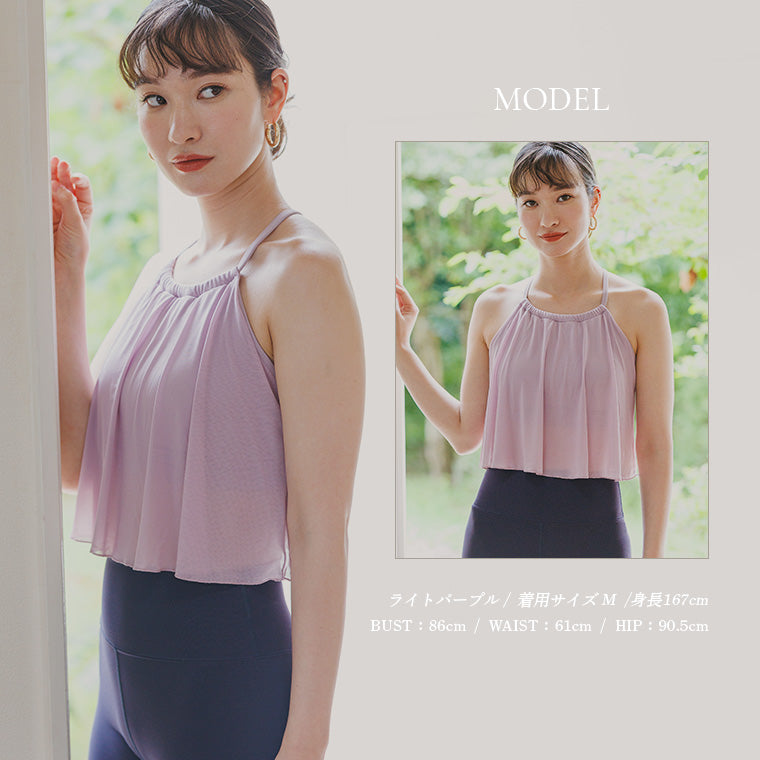 トレンド感あるシルエットに仕上げたフリルカップ付きトップス