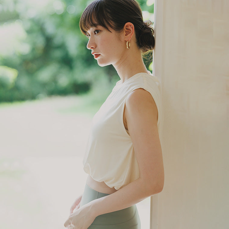 アクティブウェアの上にさらりと羽織るのもおすすめ。