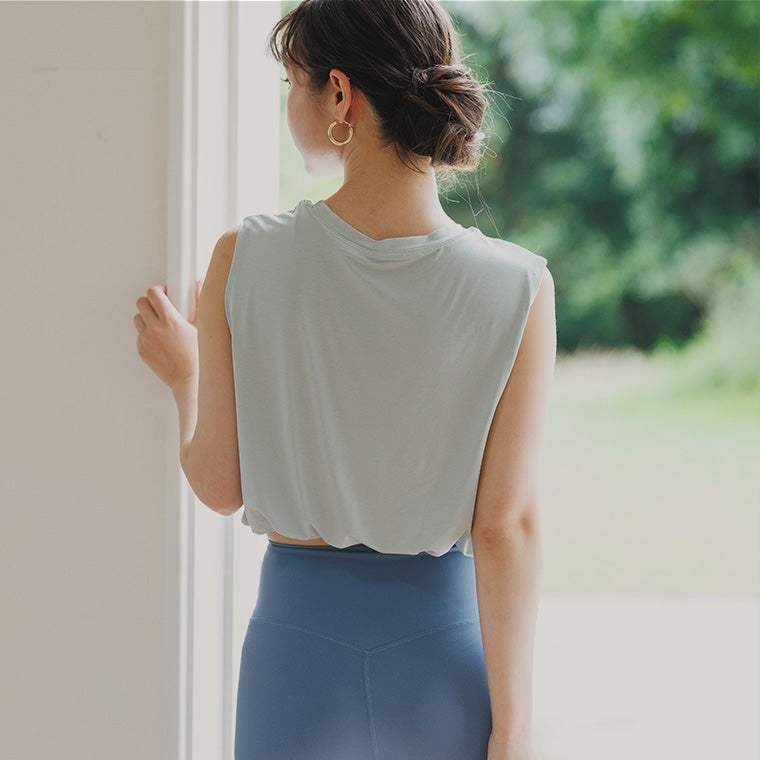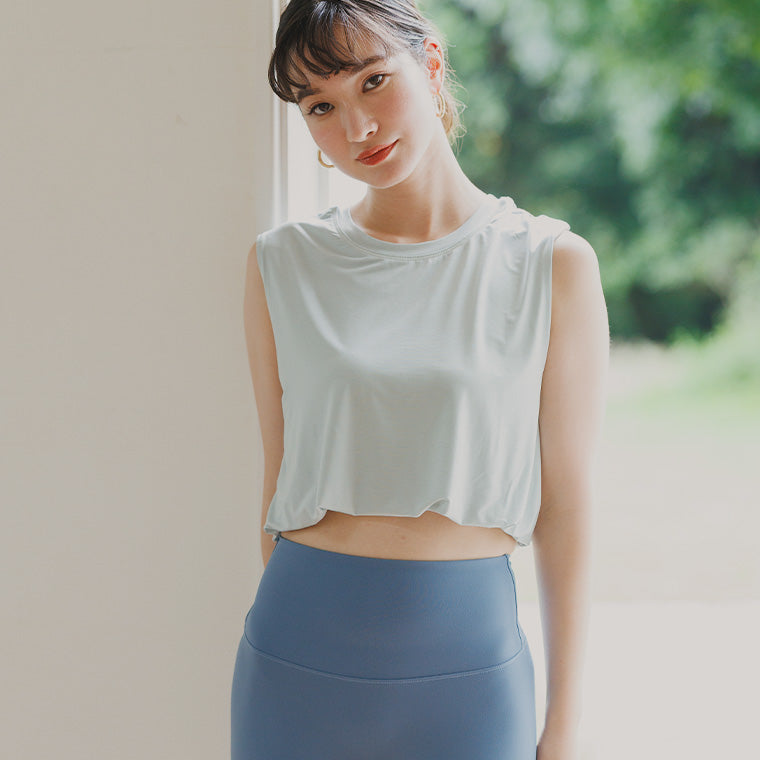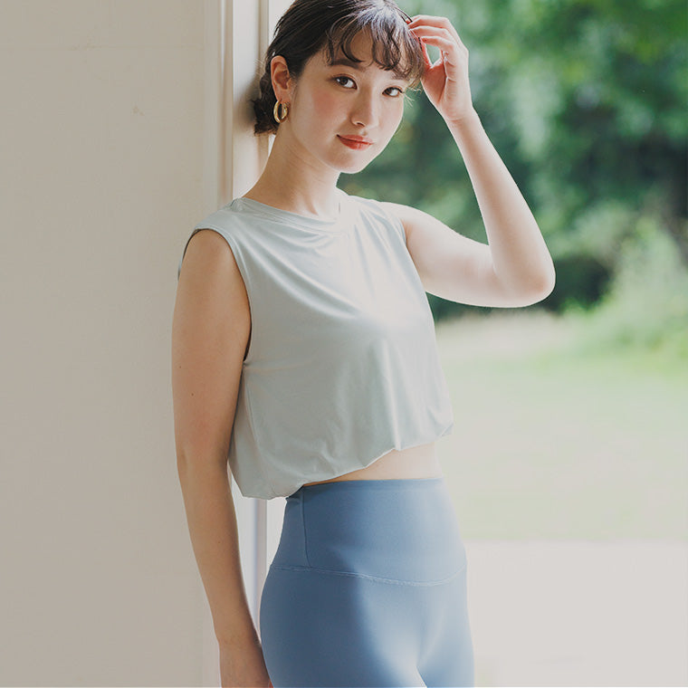 速乾性、伸縮性、耐久性に優れた新素材を使用しており、汗を沢山かくフィットネスにもおすすめです。