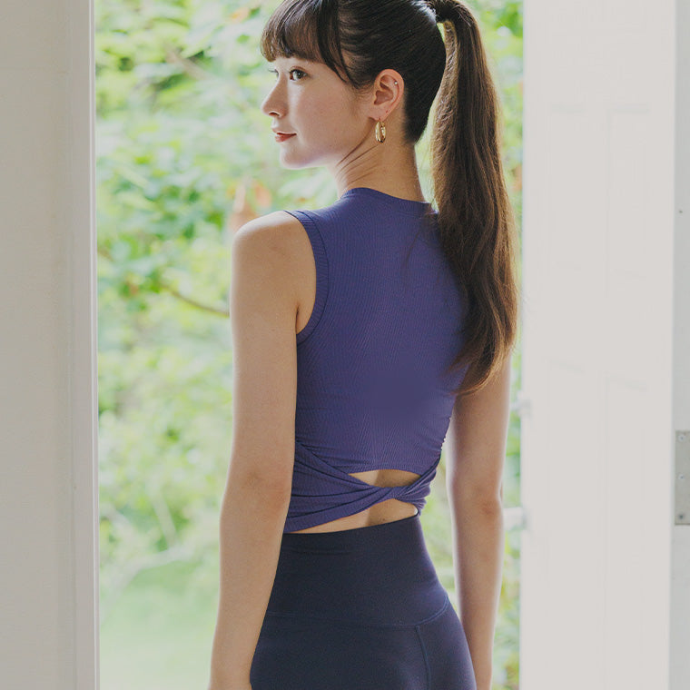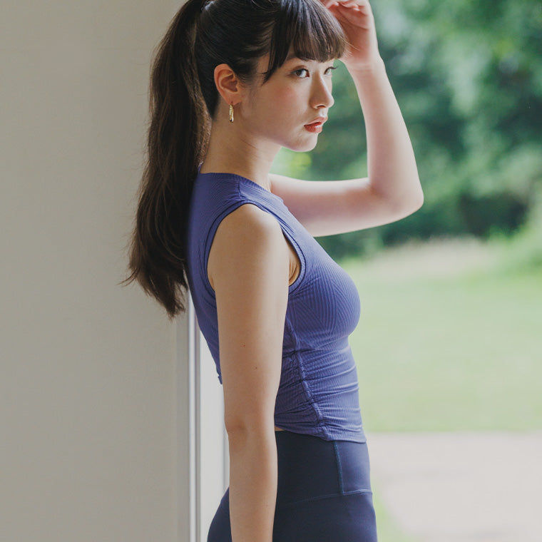 デコルテと肩甲骨を美しく見せる、動きに寄り添ったトップス